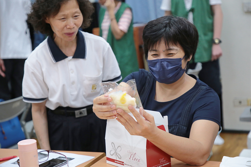 另外,今天还有一位喜爱阅读、在校成绩优异的邱美馨,与和病苦奋斗的母亲相依为命,她说生活中难免有不如意的事情,但也有意外惊喜,要有坚持下去的信念。曾经也跟法鼓山义工到偏乡小学关怀儿童,她快乐的分享,今天真是充满童心的一天,在揉捏运用天然色素所做的独角兽髮型麵团时,就能想像到儿福中心小朋友收到礼物时,脸上开心的表情。